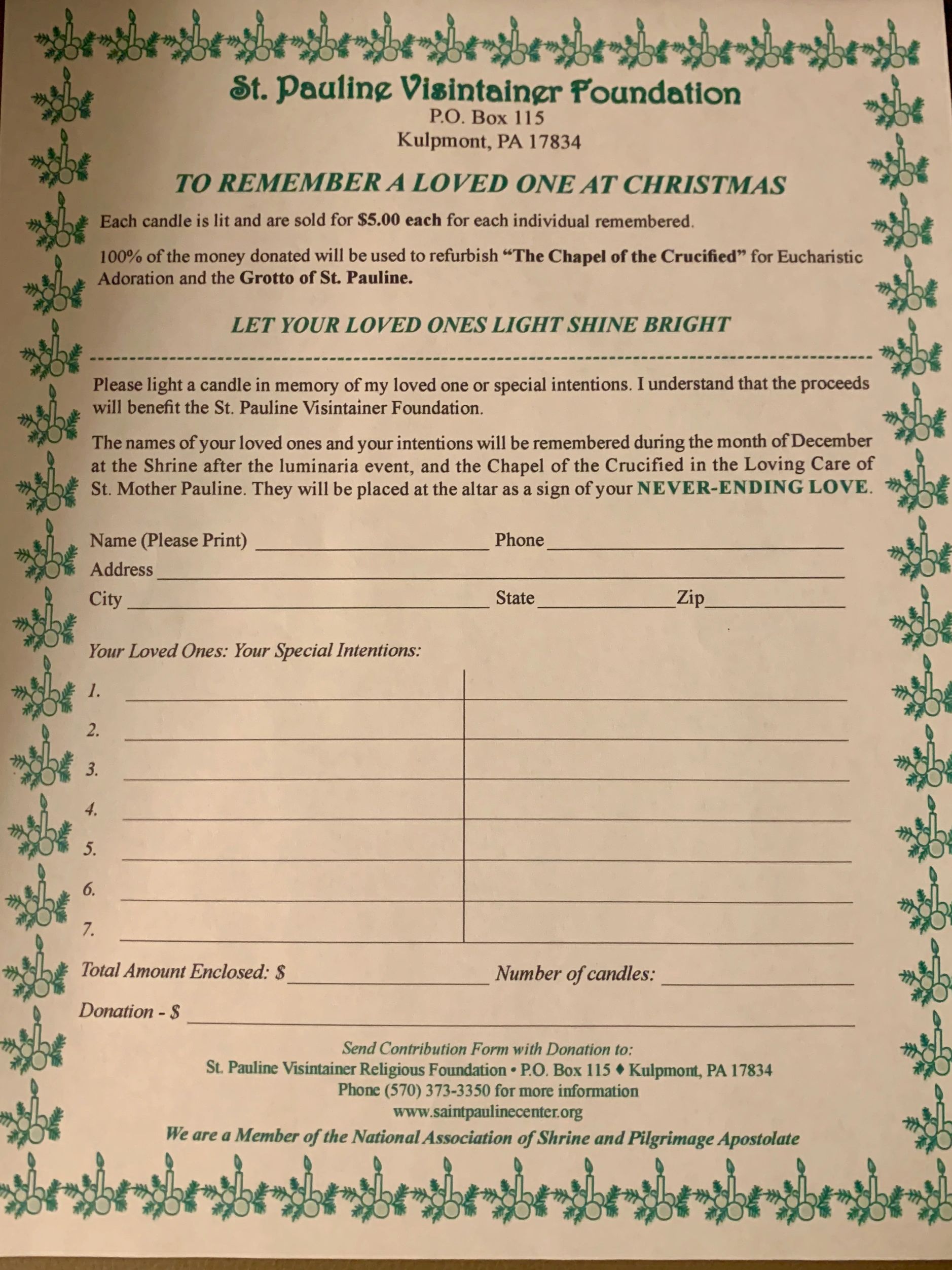 This year all proceeds will go towards the upkeep and renovation of the Saint Pauline Grotto and the Chapel of the Crucified.